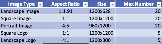 Performance Max ads allow you to add a bunch of text, as above, and a bunch of different image types, and them Google mixes and matches them for you. Here are the specs for those files.