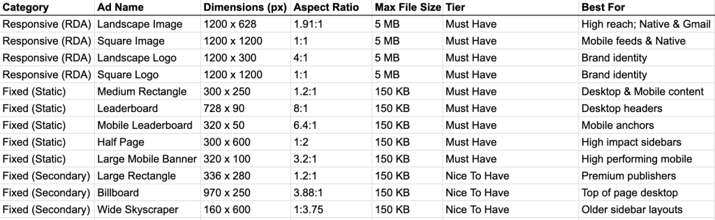 Google Ads and how you manage it, including what it requires. Based on my research, here are the Top Google Digital Ad Sizes in 2026